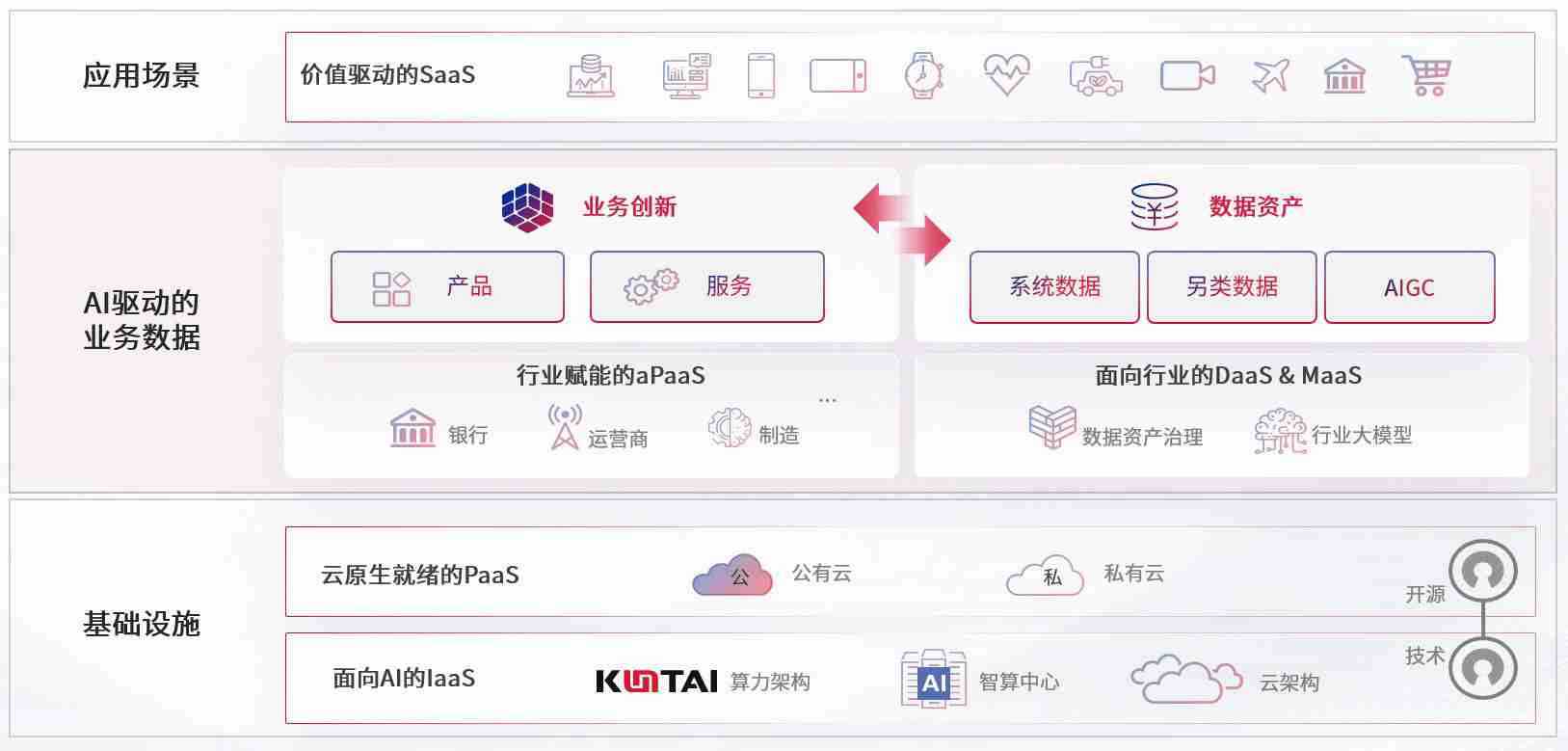 数字时代,,,,围绕企业数字化转型的关键要素,,,,NO钱包数码开创性的提出数云融合战略和技术体系框架,,着力在云原生、、、、数字原生、、、AI原生和信创产业上架构产品和服务能力,,,,为处在不同数字化转型阶段的快消零售、、、汽车、、、、金融、、、医疗、、、、政企、、教育、、运营商等行业客户提供泛在的敏捷IT能力和融合的数据驱动能力,,,构建跨界融合创新的数字业务场景和新业务模式,,,助力企业级客户建立面向未来的核心能力和竞争优势,,,,全面推动社会的数字化、、、智能化转型升级。。